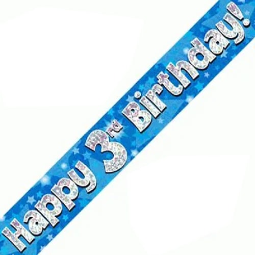 » Happy 3rd Birthday Sparkles Baby Blue Design Medium Personalised Banner – 6ft x 2.25ft