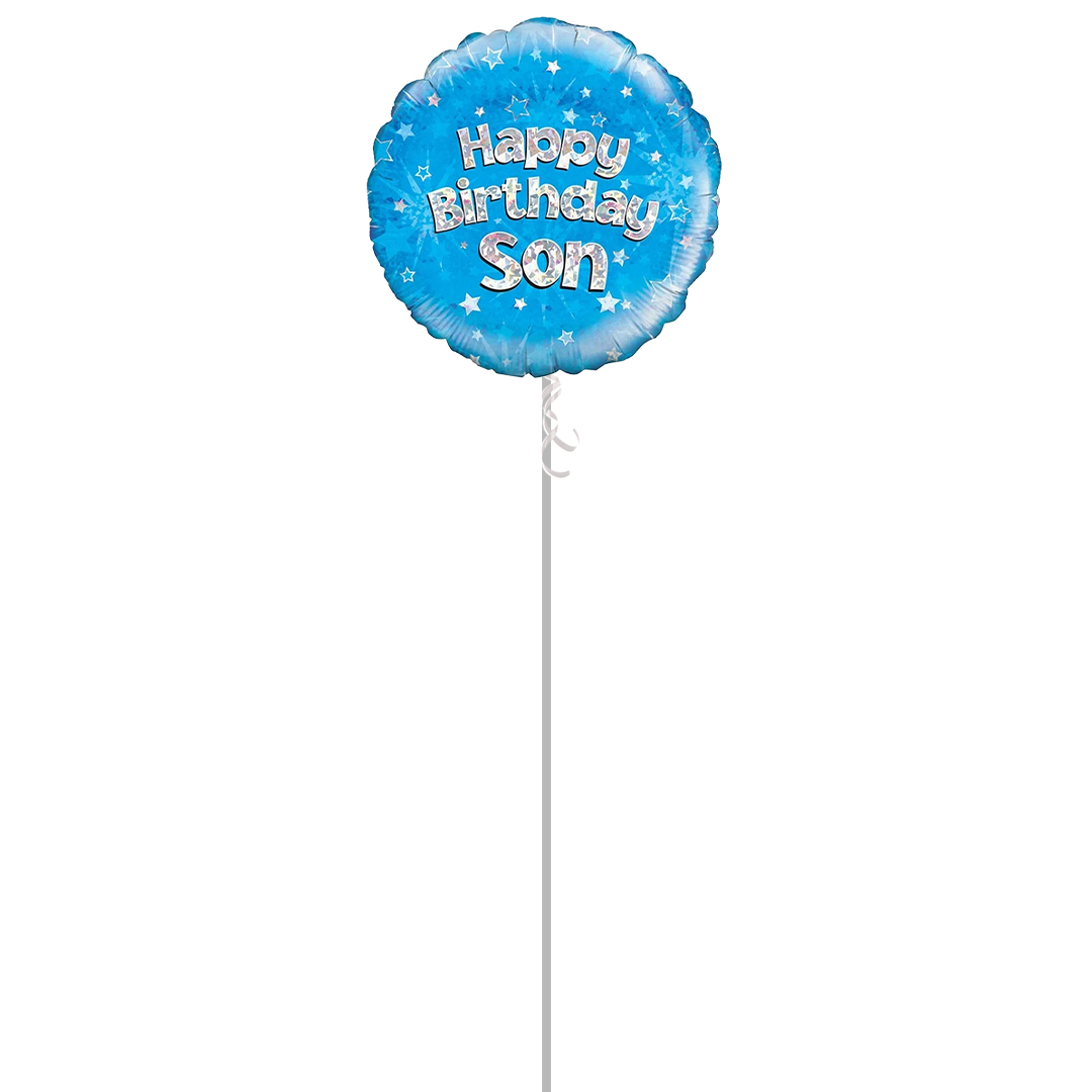You are here: Home Balloons and AccessoriesThemed BalloonsBirthday Message BalloonsHappy Birthday Son Blue Holographic Round Foil Helium Balloon 46cm / 18 in