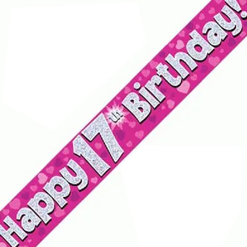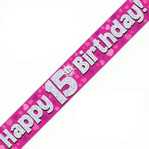 Pink Happy Birthday Teenager Holographic Foil Banner 274cm
