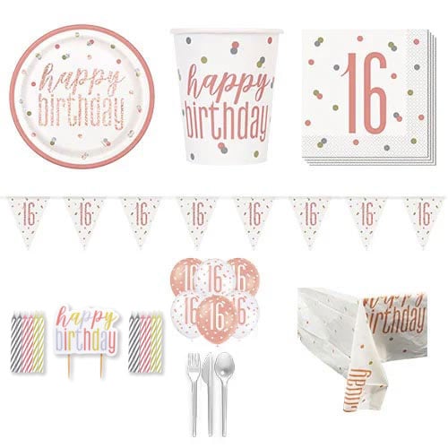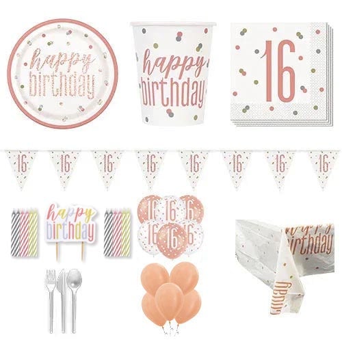 Rose Gold Glitz 50th Birthday 16 Person Deluxe Party Pack